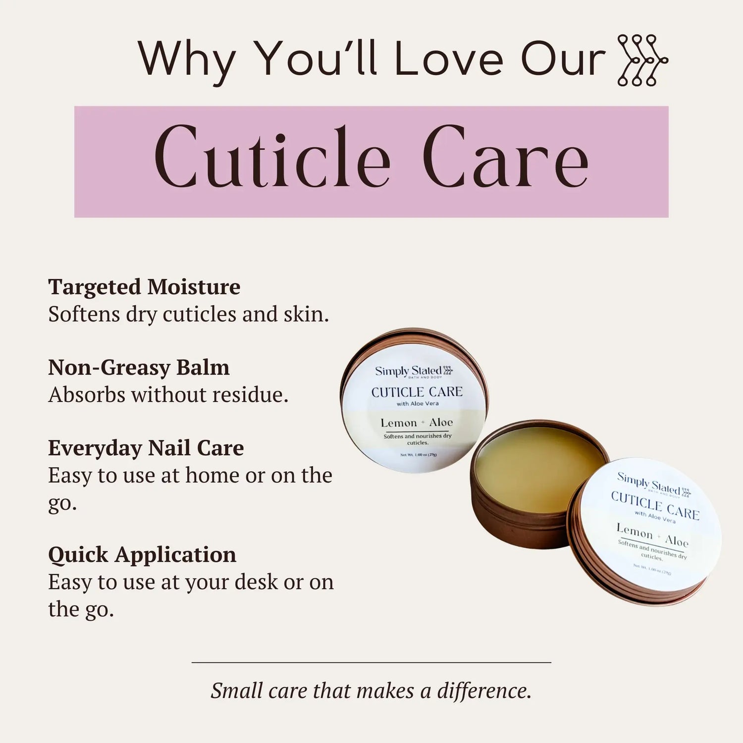 ["Available on SyncLogic","Continuously Stocked","Cuticle Care","Hand Care","Signature Line"]